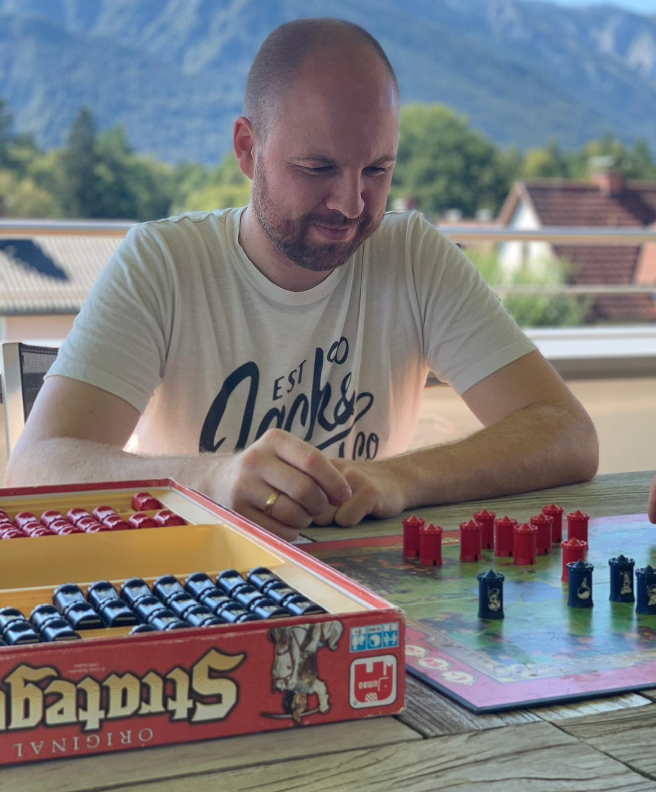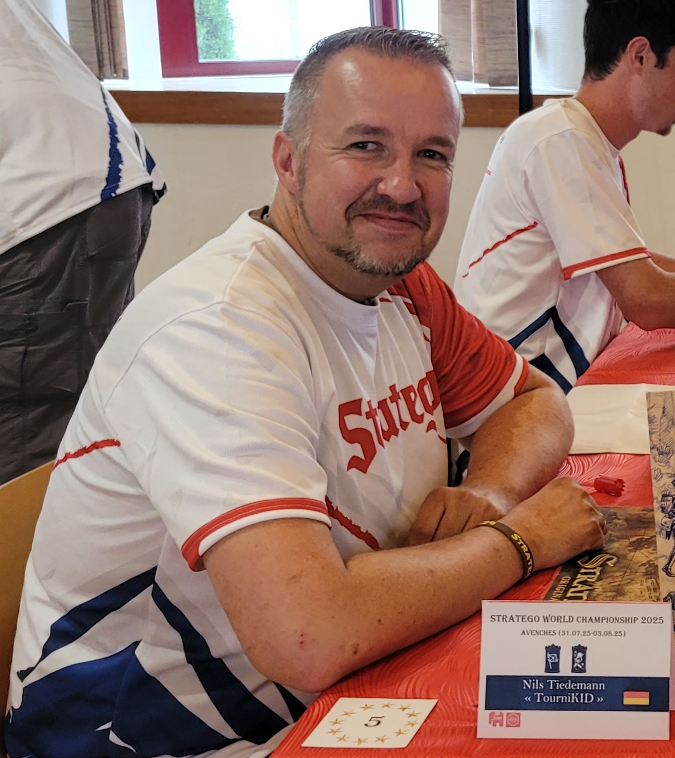 Mein Name ist Nils, 46 Jahre alt und spiele seit meinem achten Lebensjahr Stratego. Allerdings wurde ich erst seit 2019 so richtig vom Stratego-Fieber gepackt. Mit der Weltmeisterschaft 2020 in Griechenland habe ich im Grunde Stratego zum Hobby Nr.1 gemacht. Seitdem verpasse ich kaum noch ein deutsches Turnier und versuche auch einige internationale Turniere wie in Griechenland oder Holland mitzunehmen. Dabei genieße ich vor allem das Miteinander unter Gleichgesinnten.