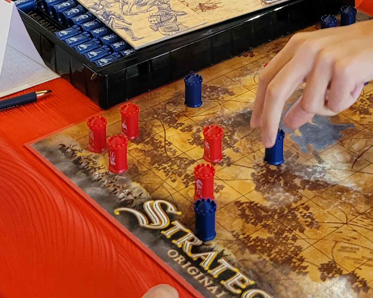 - Jeder Stein hat eine bestimmte Rangstufe (z. B. Marschall = 10, Spion = 1), die seine Stärke im Kampf bestimmt.